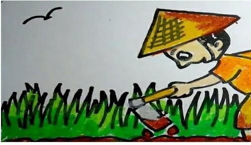 Buatlah gambar yang menceritakan dongeng "petani yang baik hati"!